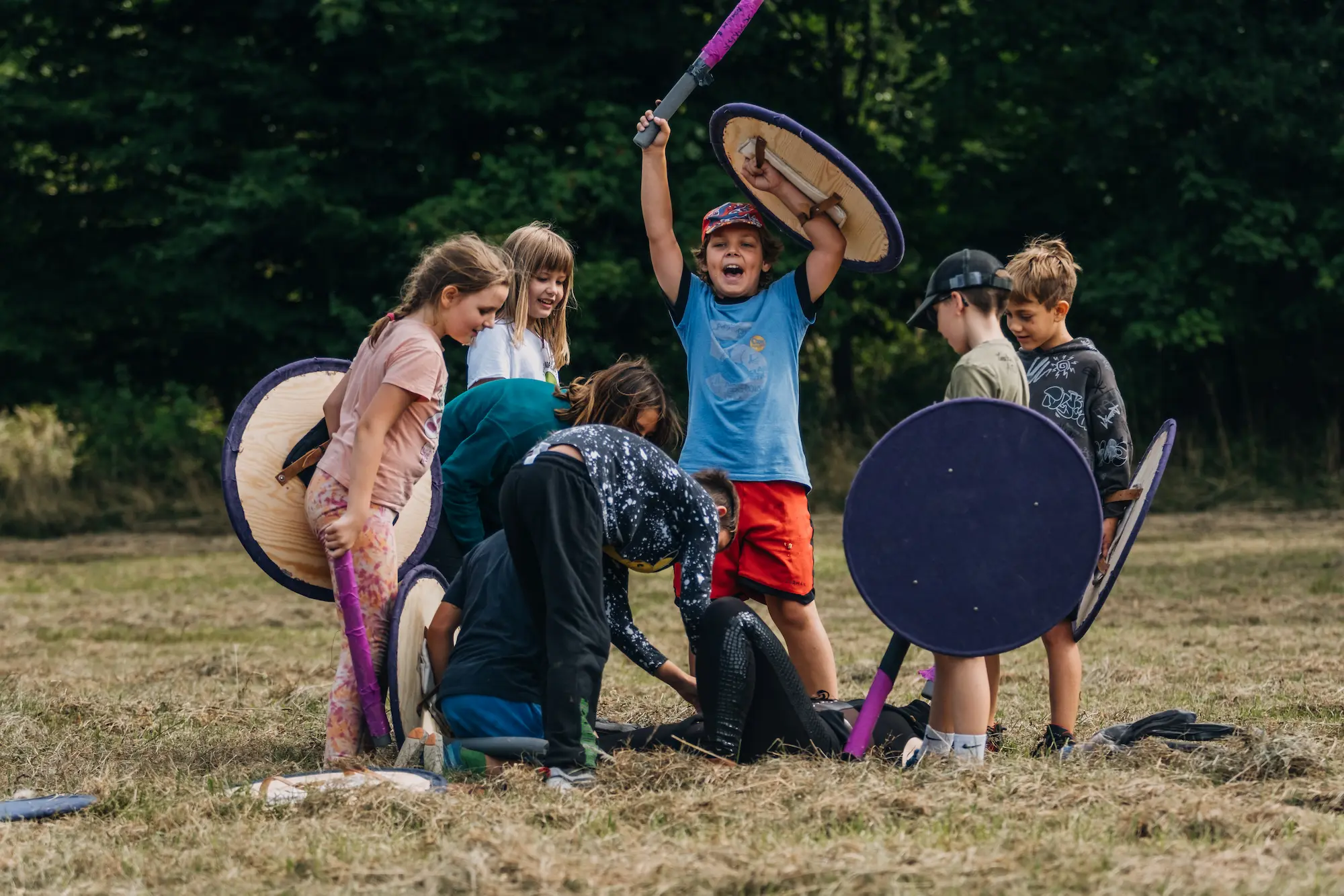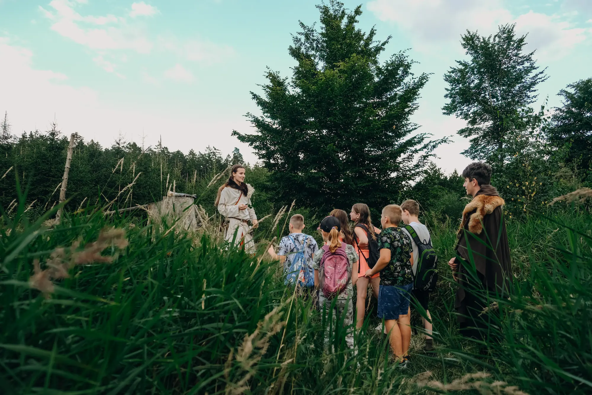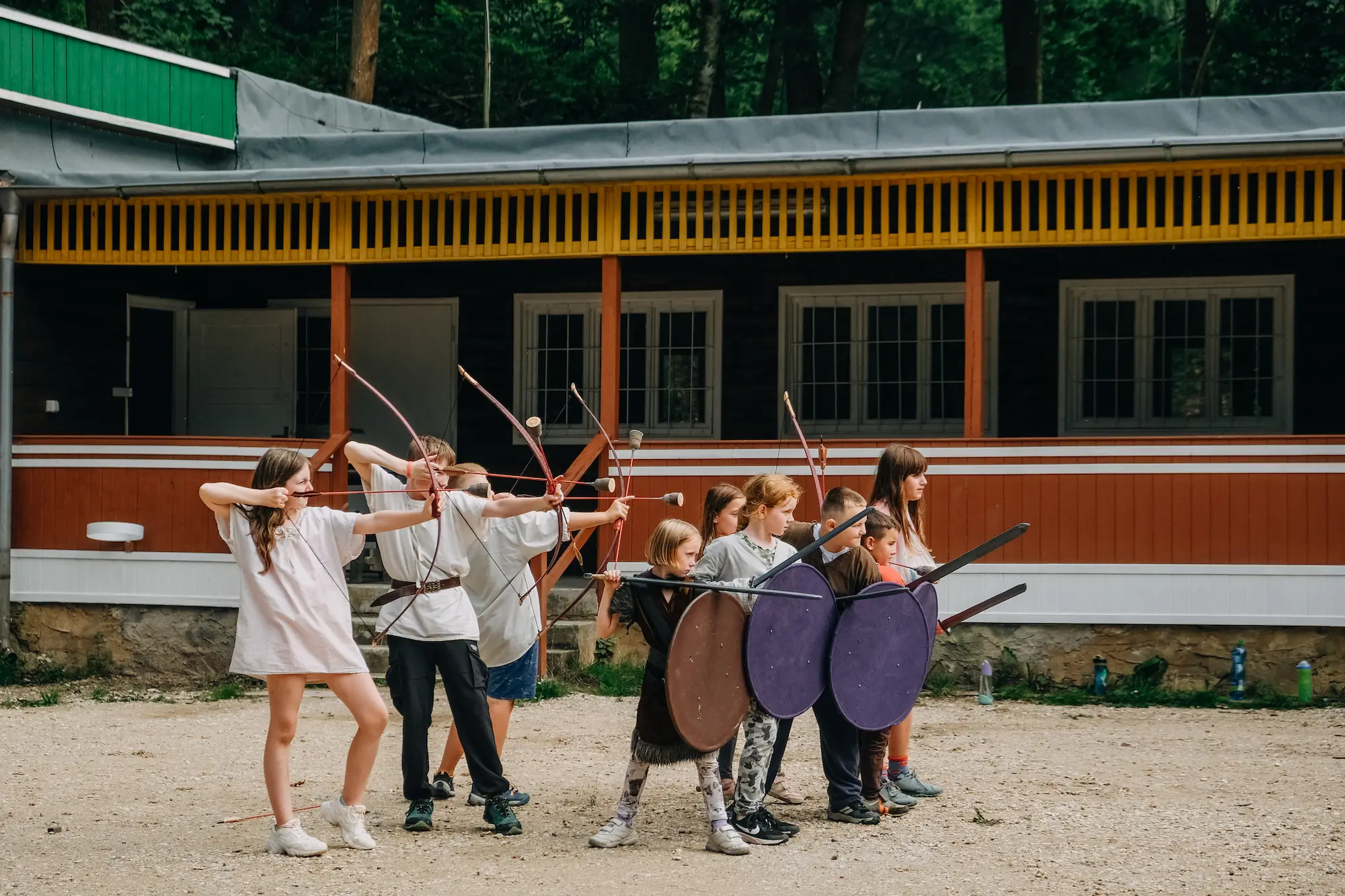 Naše letní tábory stavíme na zážitku. Děti se díky metodě larpu stávají součástí příběhu a samy ho ovlivňují. Přirozeně si tak rozvíjejí komunikační dovednosti, kreativitu a improvizaci.