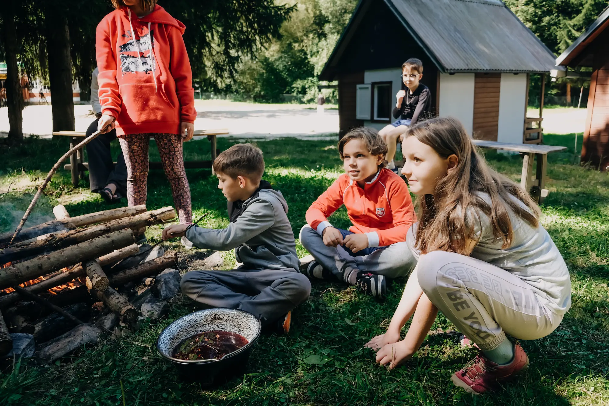 K dispozici jsou sportovní hřiště, turistické stezky, ohniště i týmové hry – ideální pro aktivní i relaxační program.
